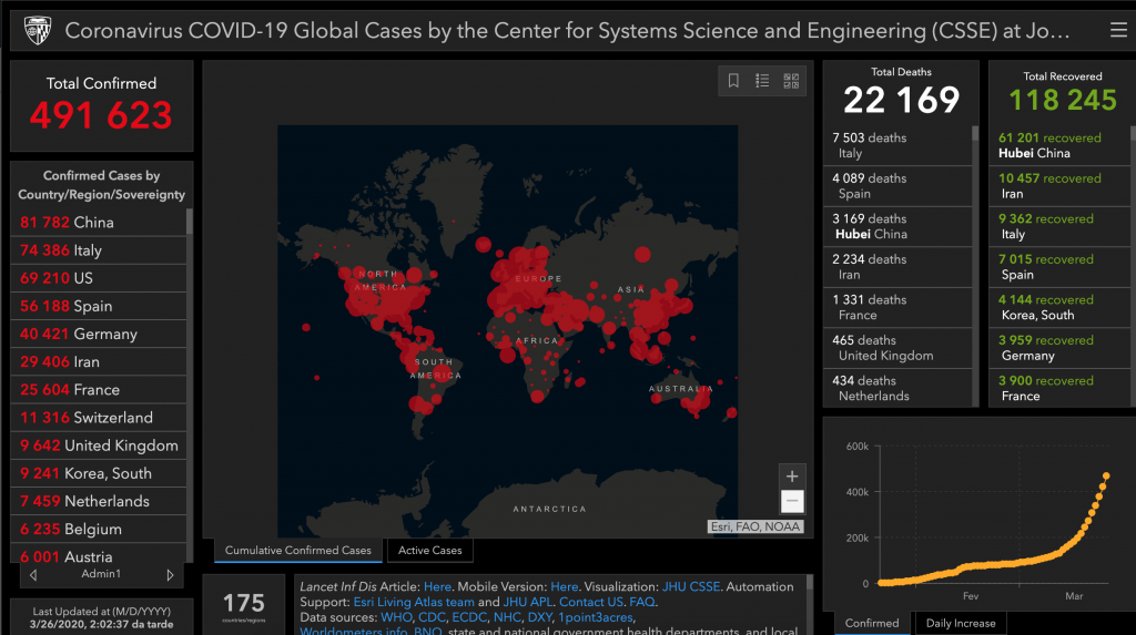 As we speak, Covid-19 is a worldwide epidemic. There are more than 490 thousand confirmed cases and 22 thousand deaths. The world is undergoing a transformation never seen before and these numbers are constantly increasing on all continents.